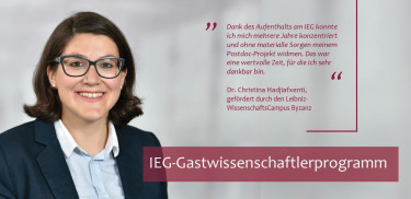 Das IEG nimmt Stipendiat:innen sowie Forschende internationaler und nationaler Förderorganisationen (wie z.B. der Alexander von Humboldt-Stiftung oder des DAAD) als Gastwissenschaftler:innen auf. Diese in der Regel jüngeren Forschende können je nach Verfügbarkeit im Institutsgebäude wohnen. Sie fügen sich in die internationale Gemeinschaft der Forschenden am IEG ein.